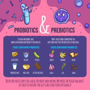 Alkohol, übermäßiger Zuckerkonsum und stark verarbeitete Lebensmittel sollten vermieden werden. - Pro- und Präbiotika: