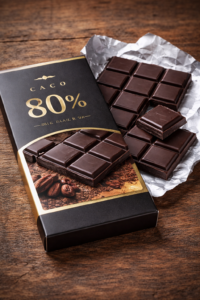 Schokolade mit ≥ 80 % Kakao enthält etwa 23–30 g gesättigte Fettsäuren pro 100 g.