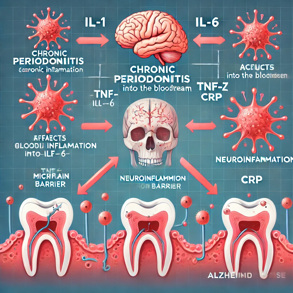 Auch Bakterien aus der Mundhöhle können eine Rolle spielen. Forschende haben einen Zusammenhang zwischen chronischen Zahnfleischentzündungen (Parodontitis) und Alzheimer festgestellt. Die dabei freigesetzten Entzündungsstoffe gelangen in den Blutkreislauf und könnten so im Gehirn Entzündungsprozesse auslösen.